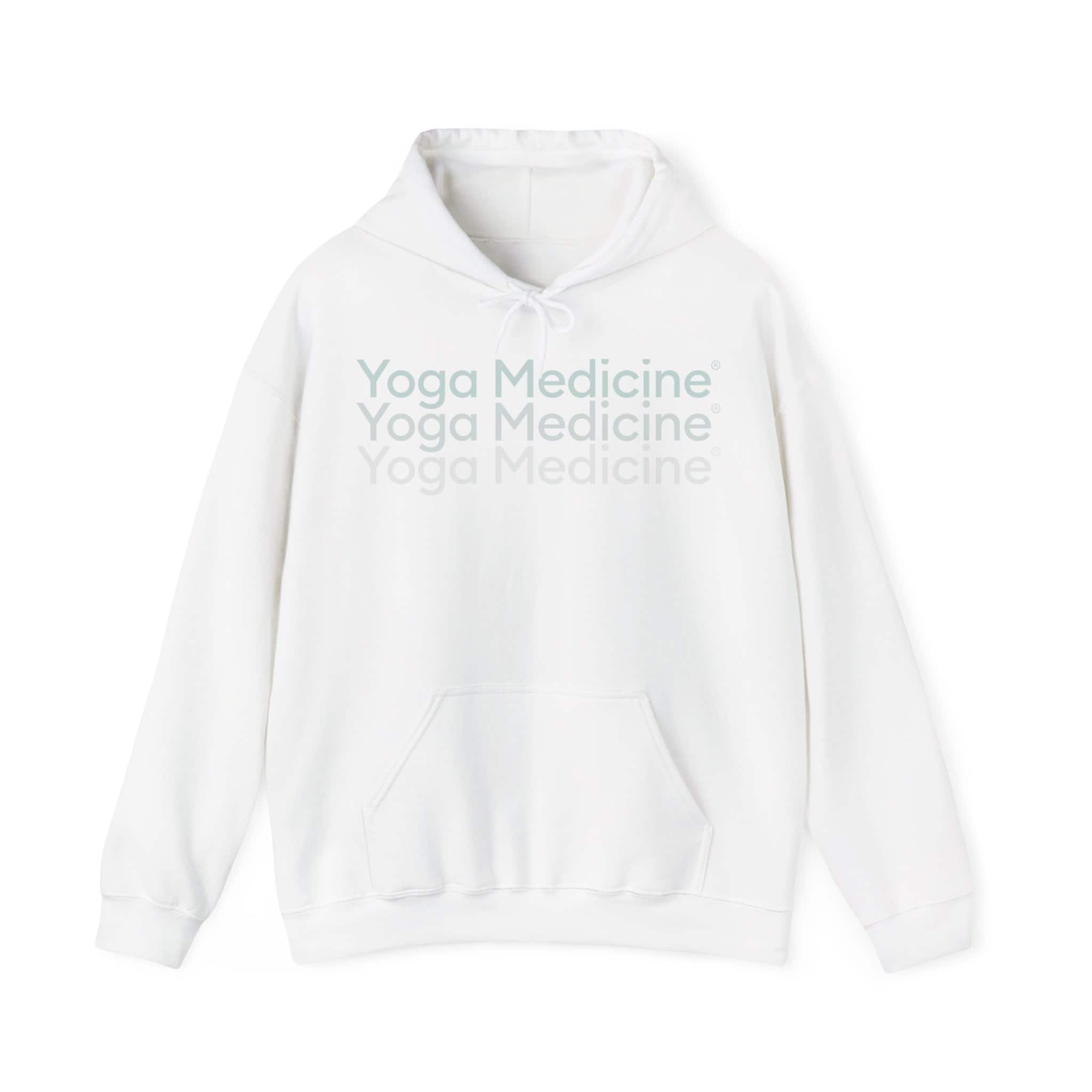 This unisex heavy blend hooded sweatshirt is relaxation itself with kangaroo pockets and hood drawstrings that are the same color as the sweater. The unique, faded logo is sure to make you stand out on the yoga mat. With material that is a thick blend of cotton and polyester, this hoodie makes for a plush, soft feel alongside warmth.