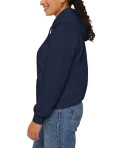 This unisex heavy blend hooded sweatshirt is relaxation itself with kangaroo pockets and hood drawstrings that are the same color as the sweater. The unique, faded logo is sure to make you stand out on the yoga mat. With material that is a thick blend of cotton and polyester, this hoodie makes for a plush, soft feel alongside warmth.